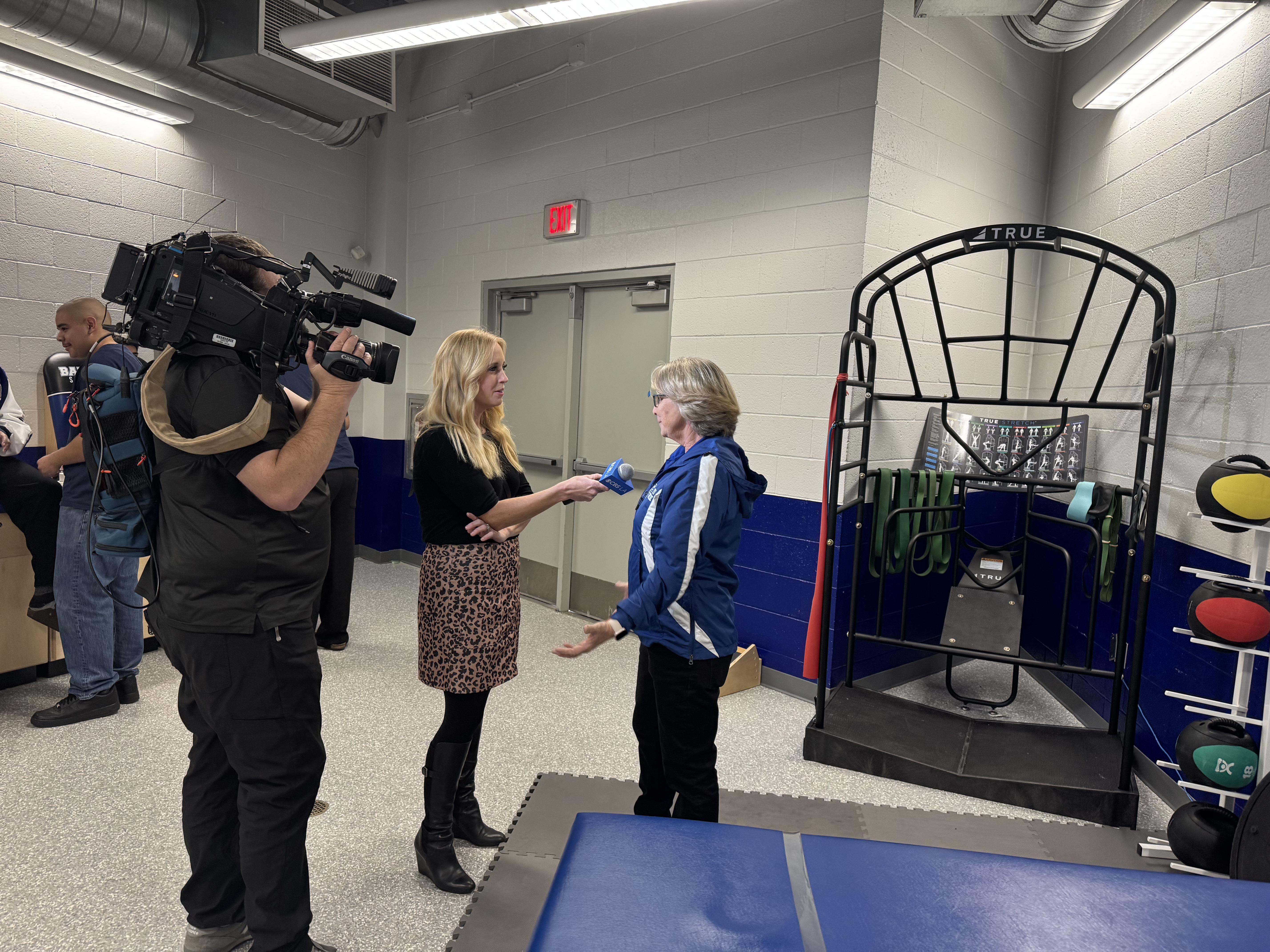 The tour continued at the school’s new Sports Medicine Learning Center, where senior Isabella Lara and student Michelle discussed coursework focused on anatomy, injury prevention and athletic care. Teacher Mimi Cash expressed her gratitude and excitement for the growing program.